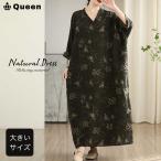 店舗名(大きいサイズのレディース服&下着専門店Queen)ワンピース 長袖 大きいサイズ レディース ワイドワンピ マキシ丈 総柄 アンティーク レトロ 薄手 春 夏 秋 グリーン
