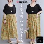 [サユサユ] Aライン ワンピース 花柄 ゆったり 綿麻 (半袖・長袖)