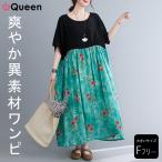 店舗名(大きいサイズのレディース服&下着専門店Queen)切り替えワンピース 大きいサイズ レディース オーバーサイズ ゆったり 体型カバー 花柄 ロング丈 夏 LL 3L 4L 5L 6L グリーン 新入荷 メール便可