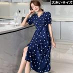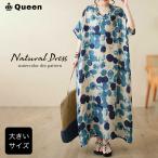 店舗名(大きいサイズのレディース服&下着専門店Queen)ロングワンピース 大きいサイズ レディース マキシワンピ ドット柄 半袖 ポンチョ Vネック 夏 LL 3L 4L 5L 6L ブルー