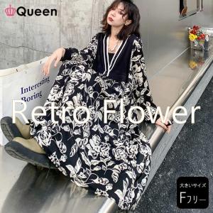 大きいサイズの服 落ち着いた雰囲気のレトロフラワーワンピース
