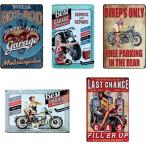 - ブリキ 看板 メタルプレート アメリカン レトロ 雑貨飾り メタル 雑貨 壁飾り アンティーク レトロ 壁飾 雑貨 ヴィンテージ風 (バイク 5枚セット)