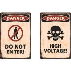店舗名(株式会社 rebellious)ブリキ看板 デンジャー 警告標識 2枚セット ヴィンテージ看板 20cm 30cm メタルプレート アルミプレート 穴あき(H.V)