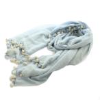 ポンポン ストール スカーフ 綿 レディース 大判 無地 コットン シルク Pompom ボンボン [.a all over the world] (ブルー)