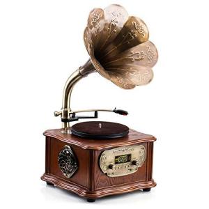 HOFEINZ 天然木材 蓄音機 純銅ホーン 工芸品 マルチレコードプレーヤー/Bluetooth4.2 /USB/FM ラジオ